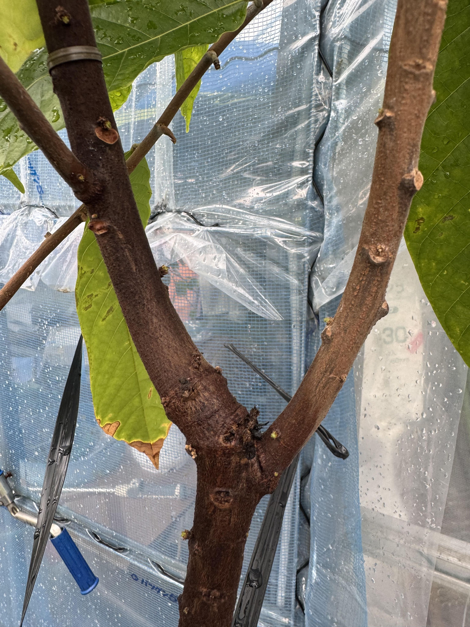 カカオは非耐寒性植物のため晩秋から春先まで温度管理が必要です