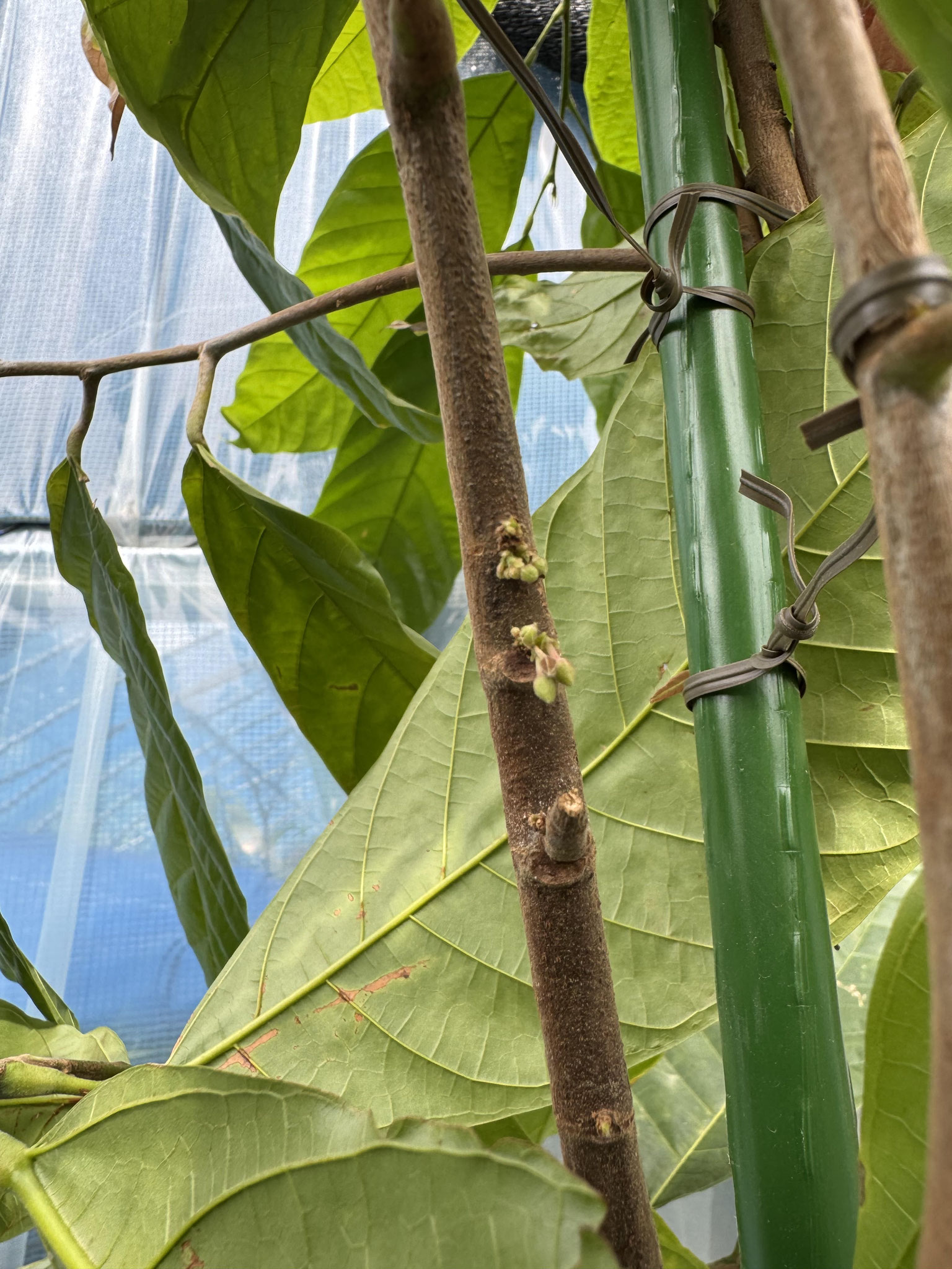 基本的に自己結実優先栽培管理、人工授粉は補助的に行います